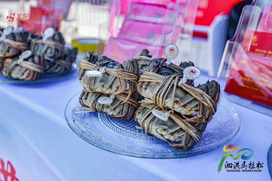 半程马拉松和全程马拉松终点,分别设置了“品蟹驿站”每一位顺利完赛的选手都可在此品尝美味的泗洪螃蟹。泗洪占有40%的洪泽湖水面,为螃蟹养殖提供了得天独厚的自然条件,大闸蟹出口量连续17年位居江苏省县级第一。