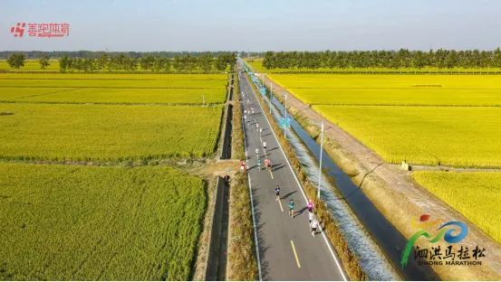 金秋十月,正值泗洪好风光,金色稻穗迎风摇曳,百里湖湾烟波浩渺。在石集柳山稻米小镇俯瞰赛道,跑友们一齐在金色绸带般的稻田间奔跑。仿佛稻田中涌动着澎湃的河流,汇聚了青春、活力、生机与热情。