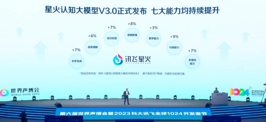 站长之家10月24日 消息:在今日的2023科大讯飞全球1024开发者节上,科大讯飞宣布,讯飞星火认知大模型V3.0正式发布,目前星火大模型已整体超越ChatGPT。