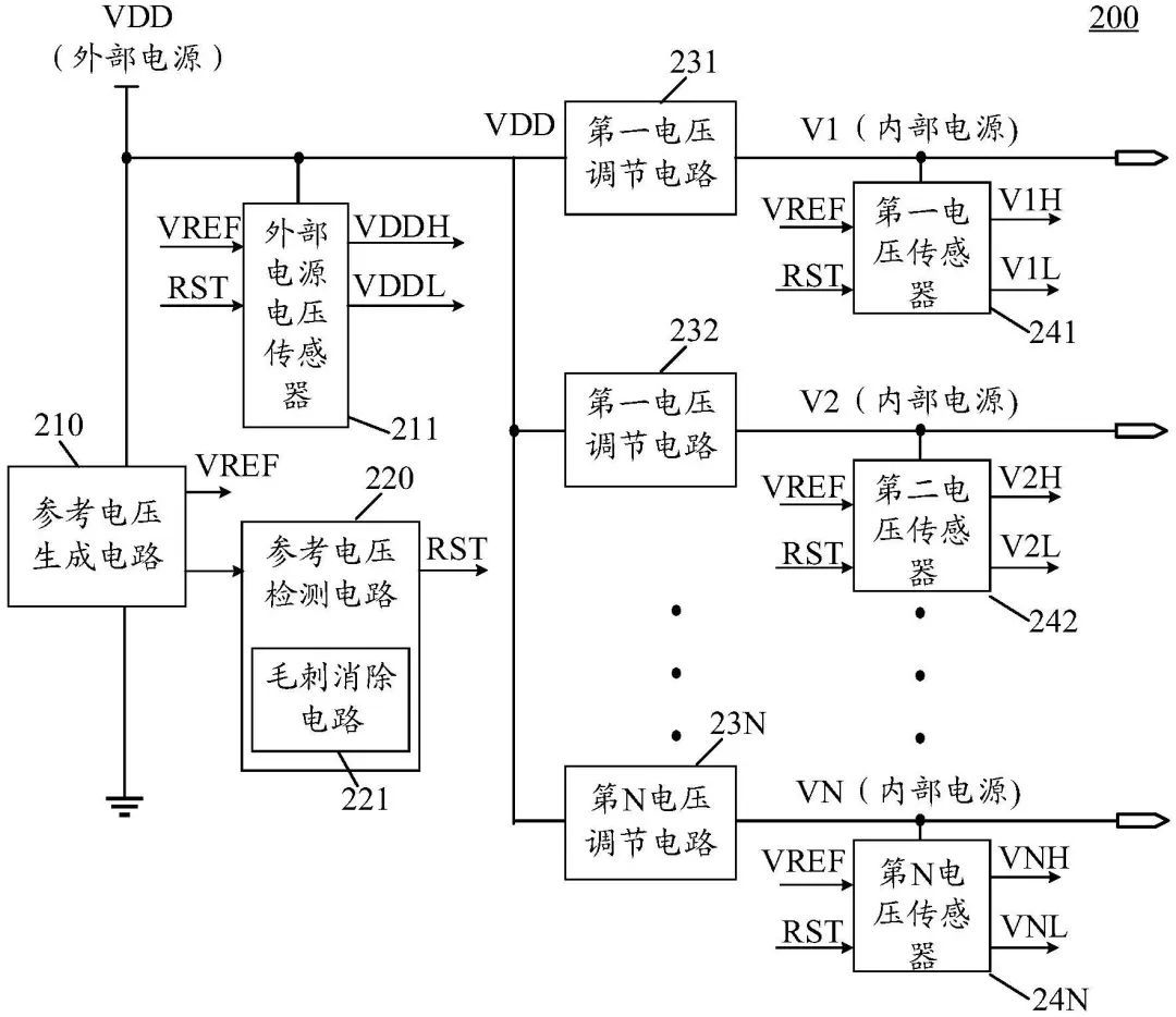 专利摘要显示,提供一种电压攻击检测电路和芯片,所述电压攻击检测电路包括:至少一个电压调节电路;所述至少一个电压调节电路分别连接至外部电源,所述至少一个电压调节电路用于将所述外部电源转化为至少一个内部电源,所述至少一个内部电源分别用于输出至少一个第一电压;至少一个电压传感器;其中,所述至少一个电压传感器分别连接至所述至少一个内部电源,以分别接收所述至少一个第一电压,所述至少一个电压传感器中的每一个电压传感器用于基于接收到的参考电压和接收到的第一电压输出第一信号,所述第一信号用于指示所述接收到的第一电压是否位于预设电压范围内。