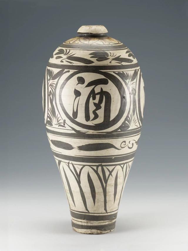 元磁州窑白底黑彩“清沽美酒”纹梅瓶