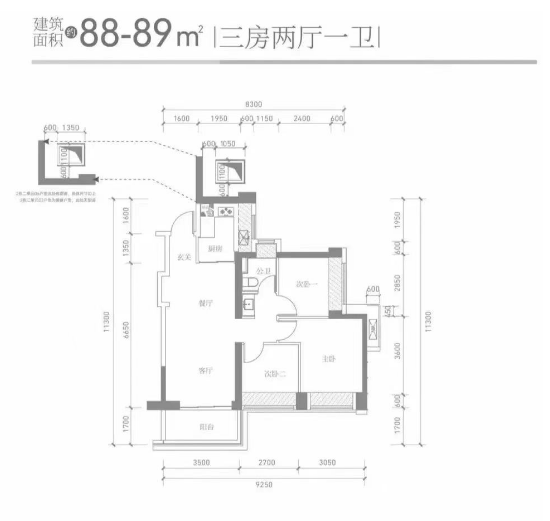 三房只做一卫,得房率低,周边配套缺乏