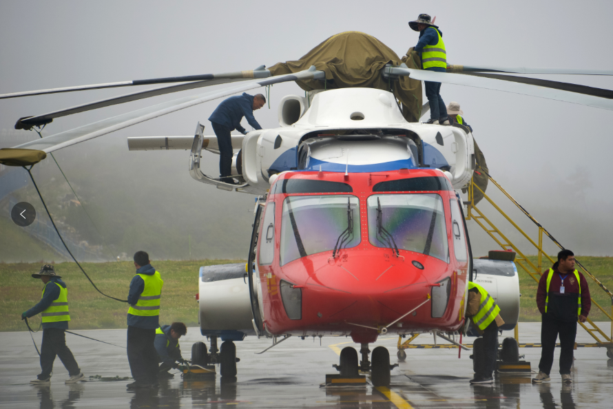 近日,由航空工业研制的国产大型民用直升机AC313A在云南省丽江市宁蒗泸沽湖机场进行高原试飞。