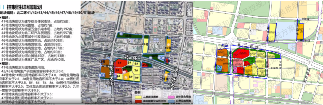 东联汽配城拆迁后规划为7.87公顷住宅用地和0.96公顷商业用地,最新公示中,沿北二环,丰收路以北地块调整为3.93公顷公建混合住宅用地。