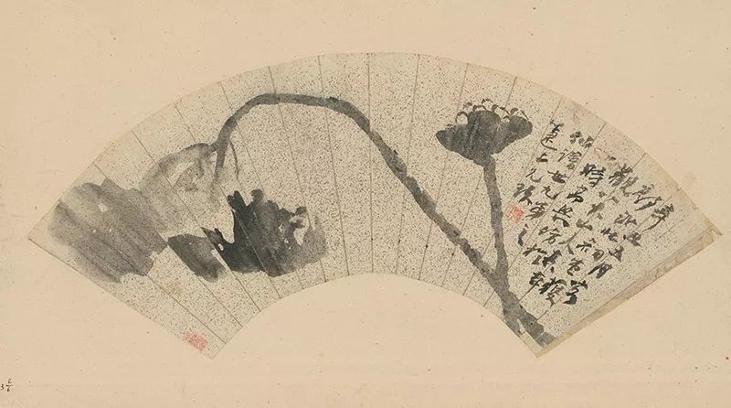 署款:辛丑五月客郭武壮祠堂,获观八大山人真本,一时高兴仿于仙谱世兄九弟之箑上,兄璜。