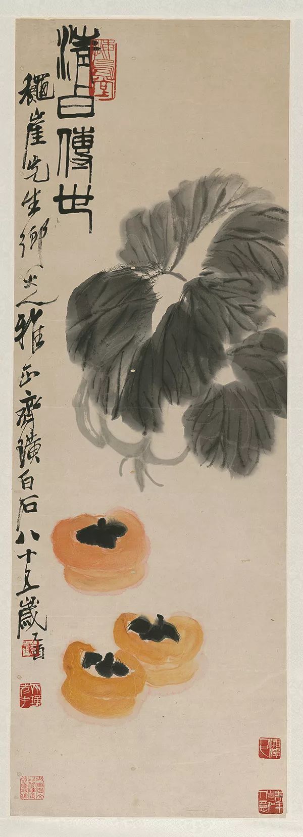 钤印:悔乌堂(朱文) 白石翁(朱文) 齐璜老手(白文) 湘潭人也(白文) 老年肯如人意(白文)