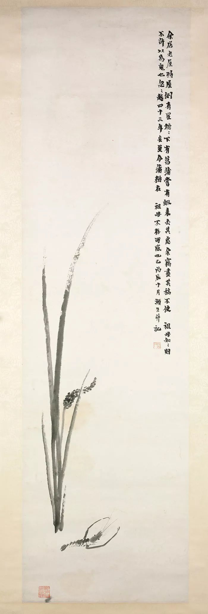 齐白石《菖蒲蝦子图轴》 1916年纸本湖南省博物馆藏