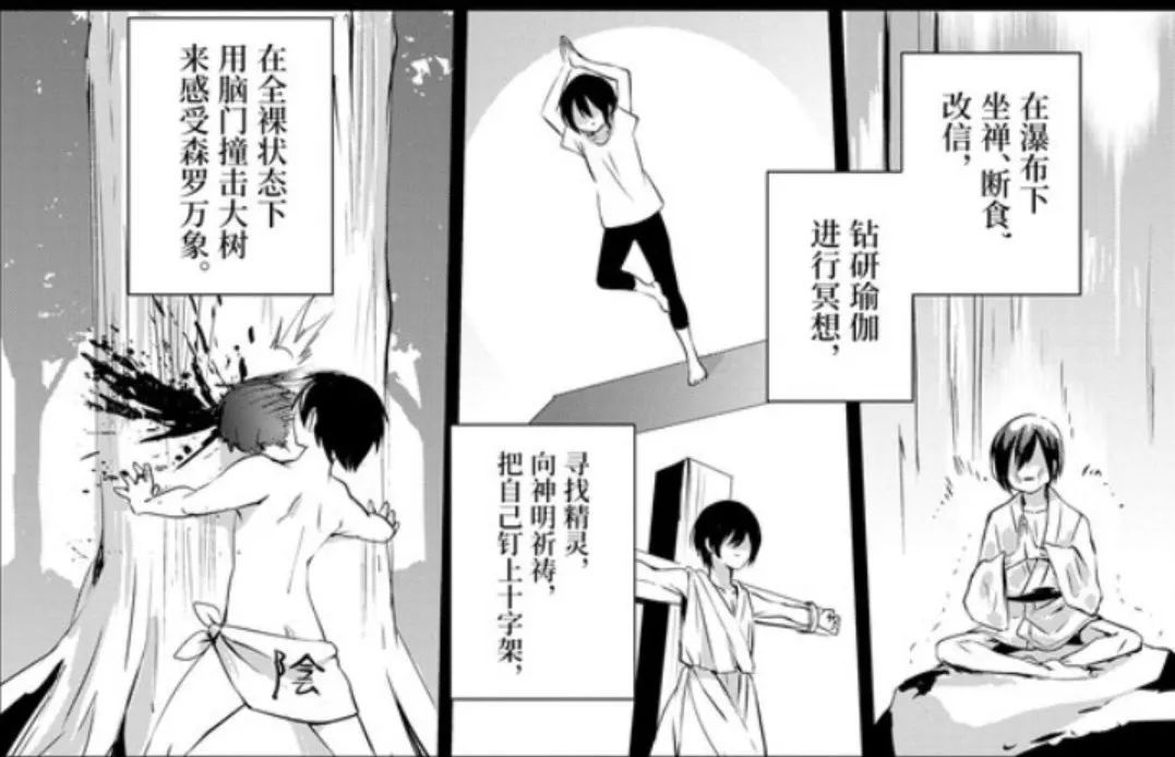 在瀑布下坐禅断食、把自己钉上十字架、用脑门撞击大树来感受森罗万象......
