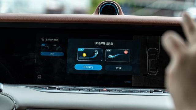 开始学习后,系统就会要求驾驶者以低于15km/h 的车速行驶,并记忆途中的转弯、车位、障碍物等项目。到达指定地点后,驾驶员还可以用自动泊车将车停入车位。