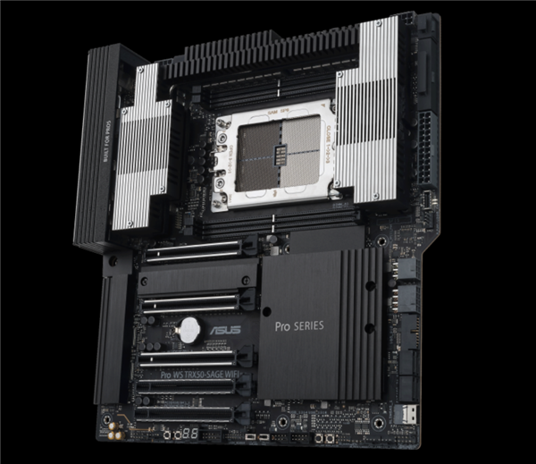 华擎为AMD Zen4线程撕裂者7000系列准备的WRX90、TRX50主板设计了多达四五个主动风扇,而华硕的Pro WS TRX50-SAGE Wi-Fi也不遑多让。