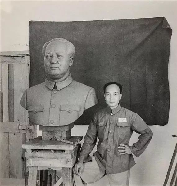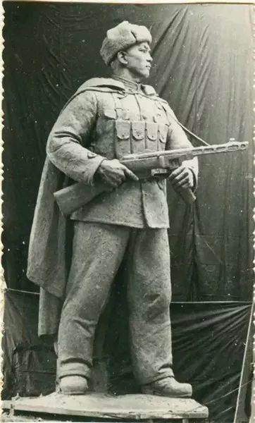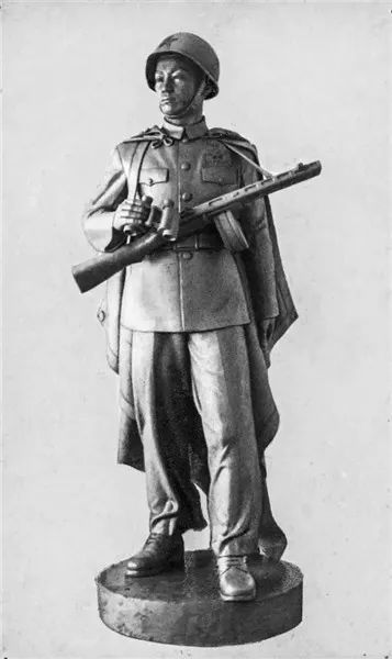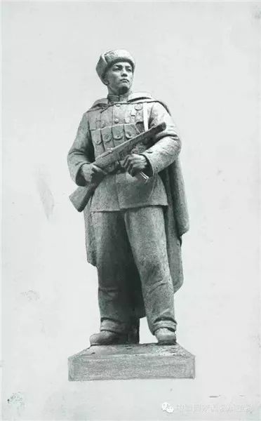 1954年张祖武为西南军区重庆国防剧院作《国防军》立像,二米五高,水泥材质,(已毁,仅存图片)