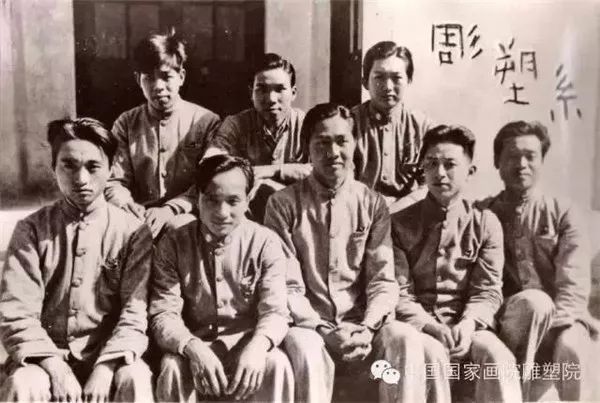 1936年杭州国立艺专雕塑系同学合影,前排左一王朝闻,左二张祖武
