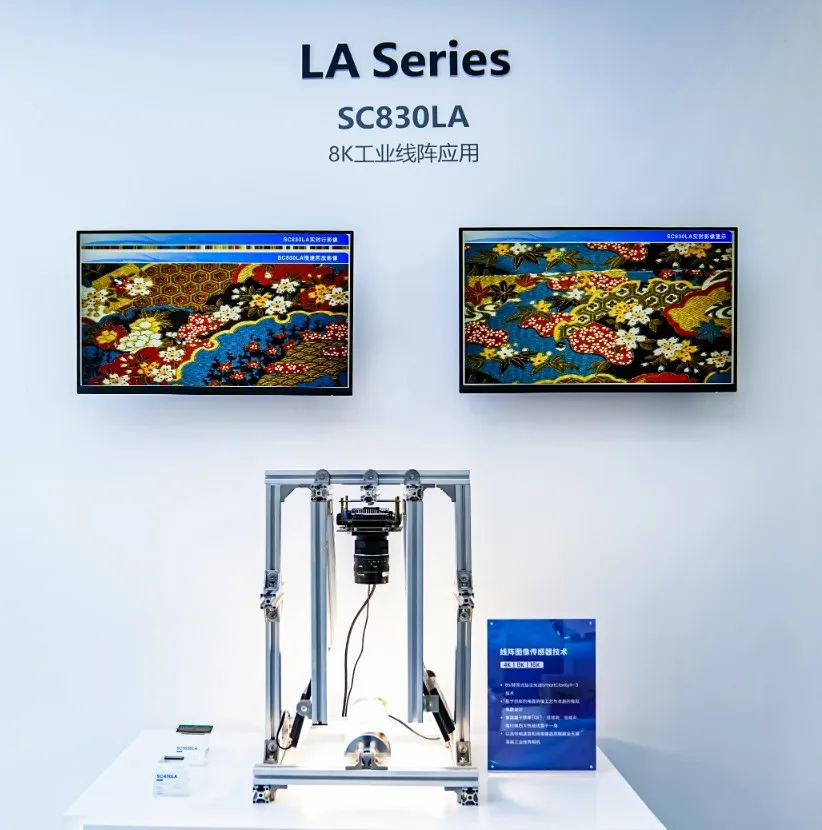 思特威在本次展会上也带来了工业级解决方案,其中LA Series工业线阵传感器方案即为其中之一。该方案将BSI背照式技术与SmartClarity®-3技术相结合,基于创新的掩膜拼接工艺与卓越的模拟电路设计,能够将高量子效率(QE)、低能耗、低噪声、高行频四大性能优势集于一身,满足高端工业线阵相机在高传输速度场景中全天候实现高图像品质检测应用。