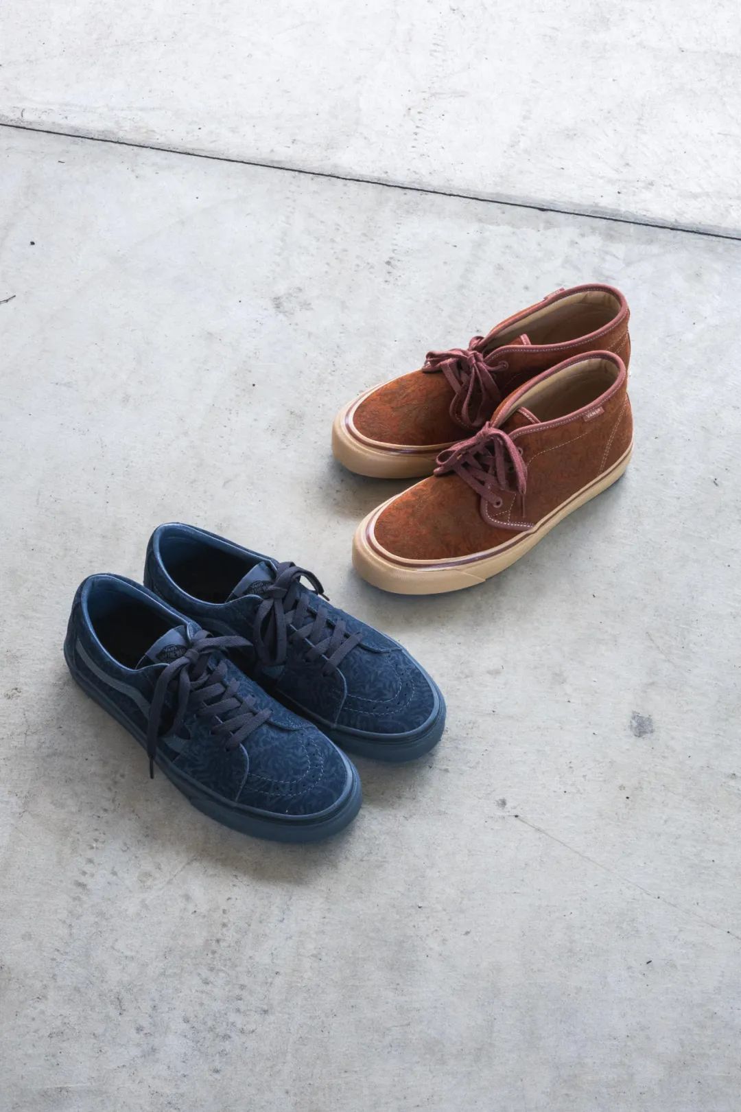 Vans x White Mountaineering 联名系列以 Vans Sk8-Low 和 Chukka 49 DX 两款鞋型为创作蓝本,运用深灰色和棕色两种纯色配色方案,释出两款彰显联名属性的鞋款。两双鞋款的鞋面均为搭配了 White Mountaineering 23AW 系列的原创植物图案印花的麂皮面料。更为不同的是,Chukka 49 DX 鞋款的植物图案印花使用了激光技术,使得鞋款简约但不乏味,诠释独特的设计美学。