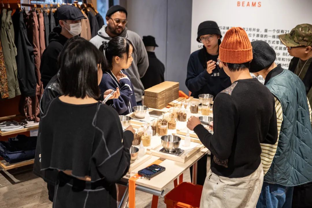 BEAMS 北京三里屯太古里开展 BEAMS“咖啡工坊”。为庆祝 BEAMS 新店开业,在BEAMS 北京三里屯太古里店铺内开展“BEAMS咖啡工坊”。通过 workshop 的形式,传播品牌核心,让顾客了解 BEAMS 不止服装,更像是一种生活方式的理念。