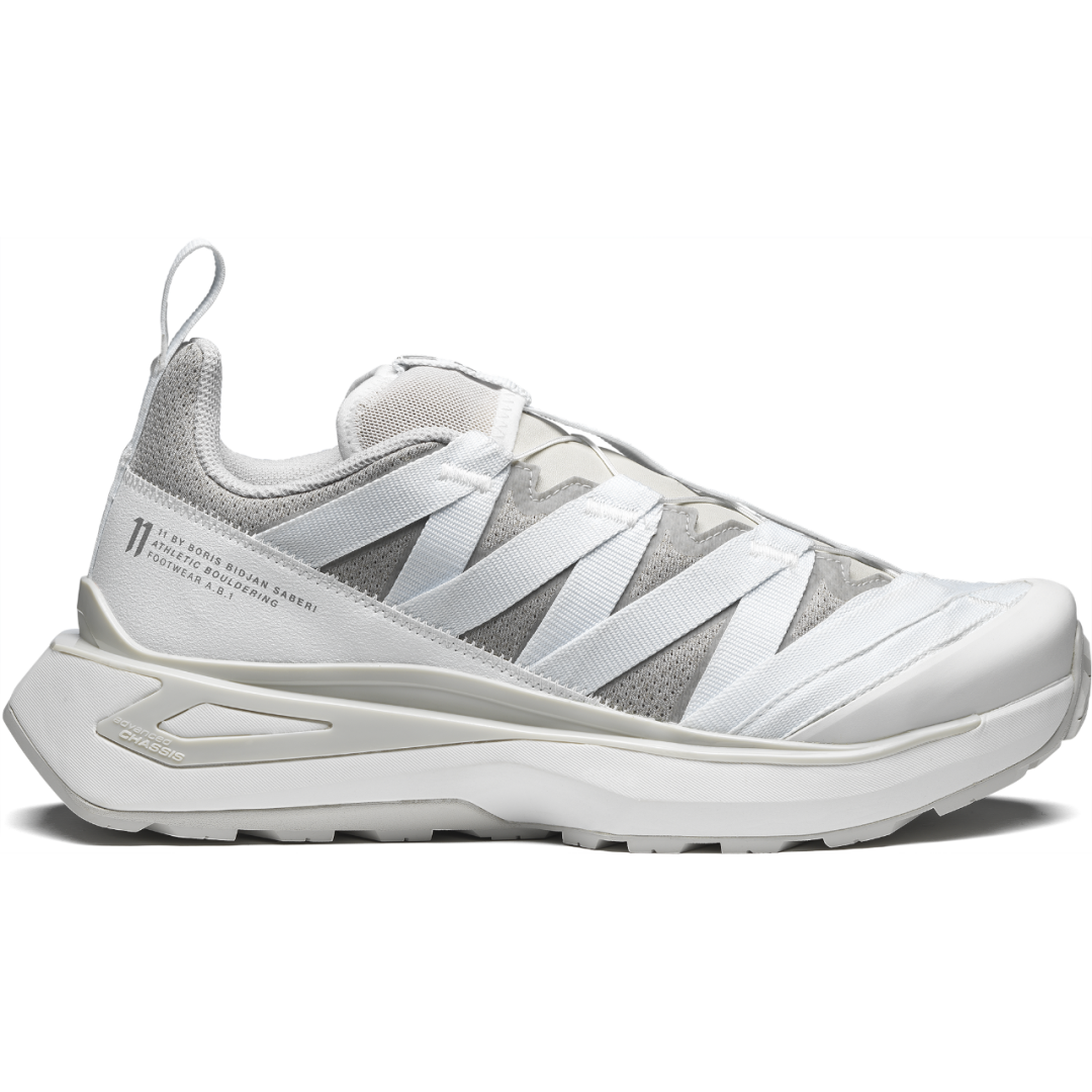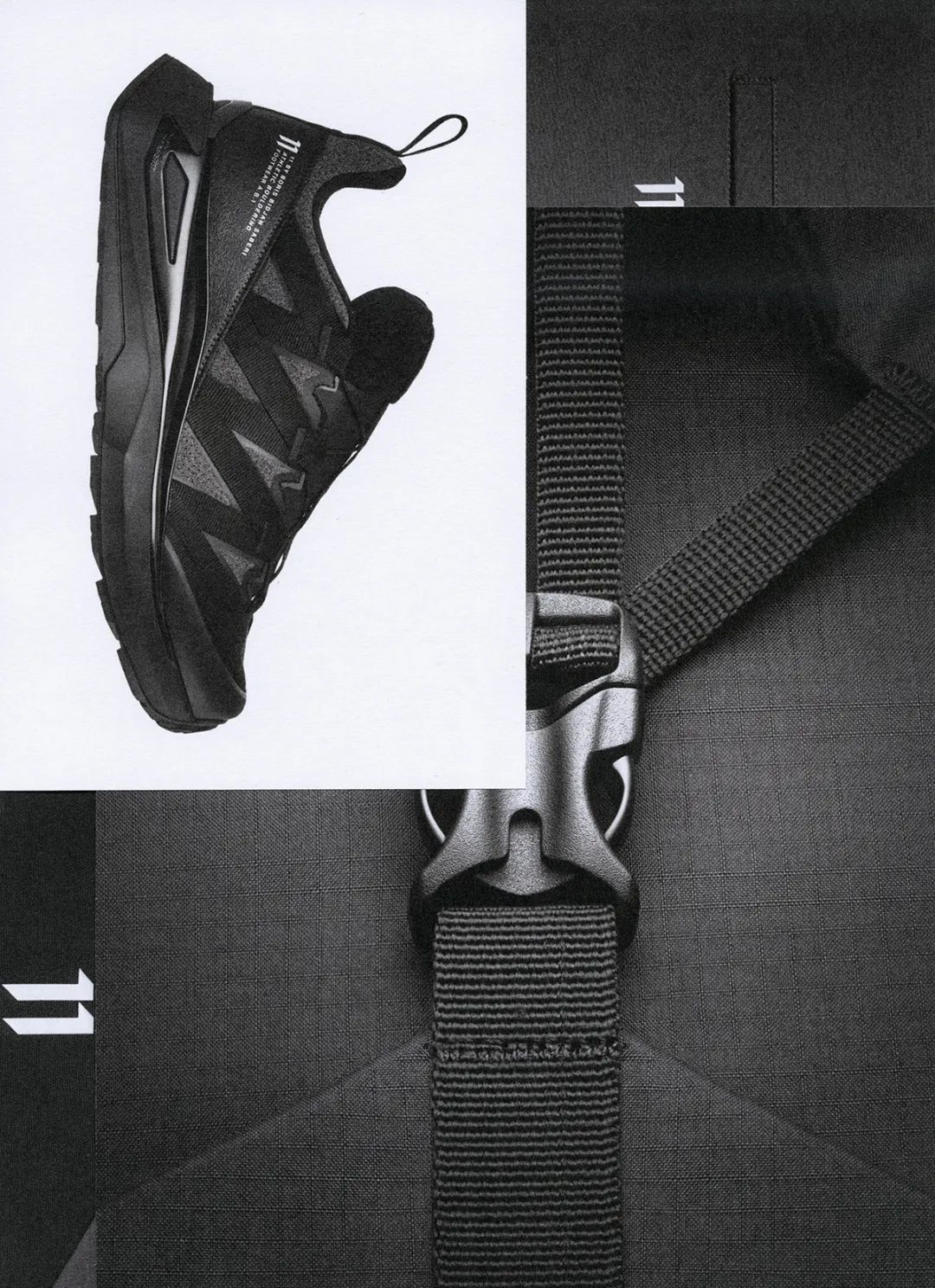 联名合作鞋款11S FOOTWEAR A.B.1 此次推出暗黑/纯白两款配色,通过独特的鞋面构造和材料选择,深度诠释机能风美学与朋克精神。科技层面,鞋身整体以 Sensifit™ 技术打造的织带贯穿,确保了精确而灵活的脚掌支撑和持久的舒适性。得益于柔软的材料、贴合的设计和加强缓冲的泡沫中底,使鞋类具有极高的穿着舒适性。独家 Advanced Chassis™ 底盘科技,更为鞋子增加了额外的稳定性。