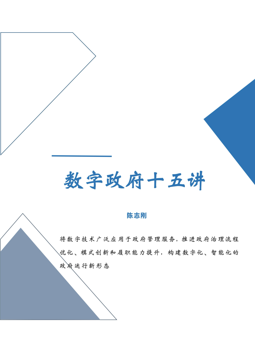 本系列讲座是结合笔者在数字政府领域参与国家和各地数字政府建设中新的实践和思考,立足国家在数字政府领域的顶层设计,以国际化的视野,针对数字政府建设的常识、热点、重点、难点、重点展开的系列讲座。