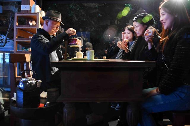 待到华灯初上,再现禅茶文化气象的杼山文化园,绚丽多彩的灯光秀、沉浸式的夜游演出,让游客置身其中,宛如时空穿越重回大唐。据介绍,该园依托杼山原有文化遗存、古籍记载设计,以陆公遗风、石潭塔影、妙雨听松等“杼山十景”,串联起一条休闲赏景、文化寻游、深度体验的禅茶文化游线。
