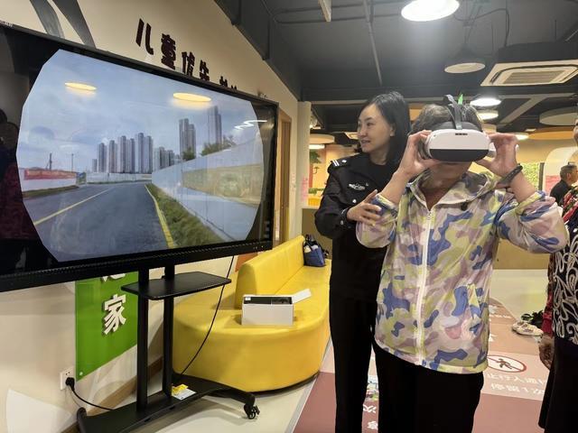 身临其境的VR体验区,寓教于乐的交通安全“飞行棋”,徐汇交警今年来致力打造的第三个家门口交通安全宣传点在华泾镇盛华景苑社区开设。社区居民特别是“一老一小”群体,可以足不出小区,在家门口获得直观持续的交通安全知识。