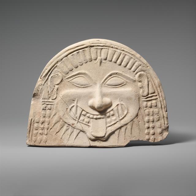 饰有美杜莎头像的赤陶屋檐瓦片,公元前6世纪,大都会艺术博物馆藏。
