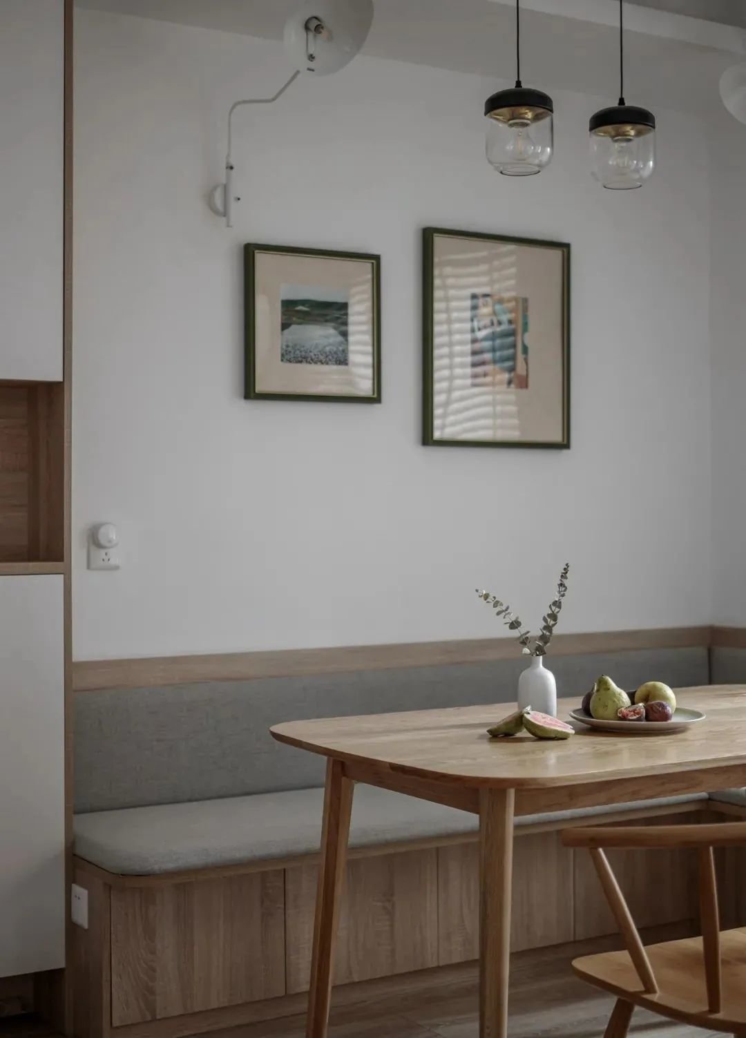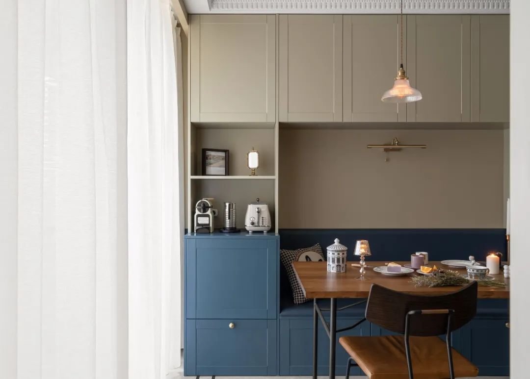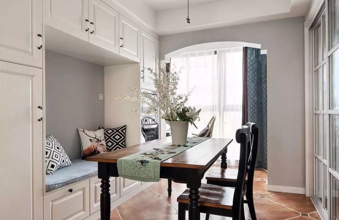 卡座与飘窗结合,自带闲适安然的感觉,无论是聊天还是工作都会非常惬意。