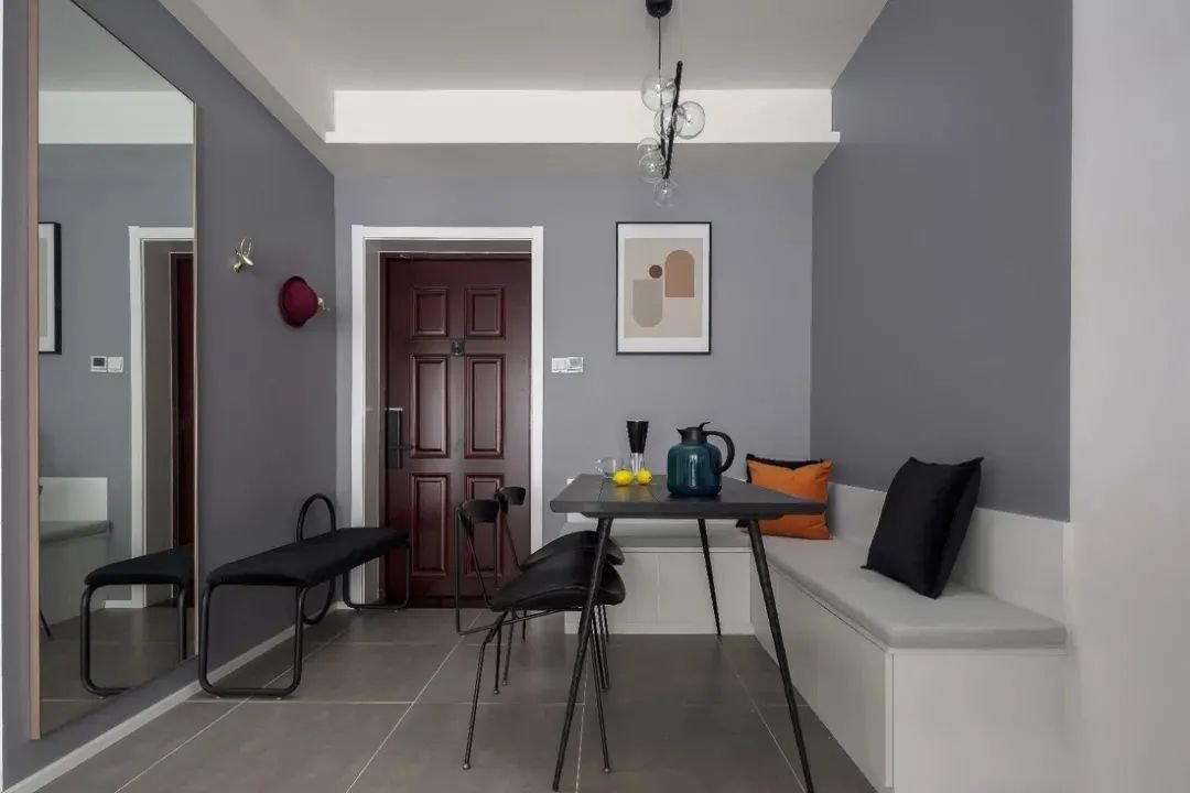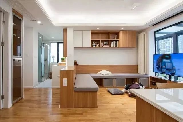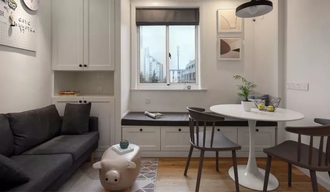 卡座底部可以做收纳柜子,有效缓解小户型收纳空间不足的难题。对于小户型而言,这也是非常难得而巧妙的空间利用方式。