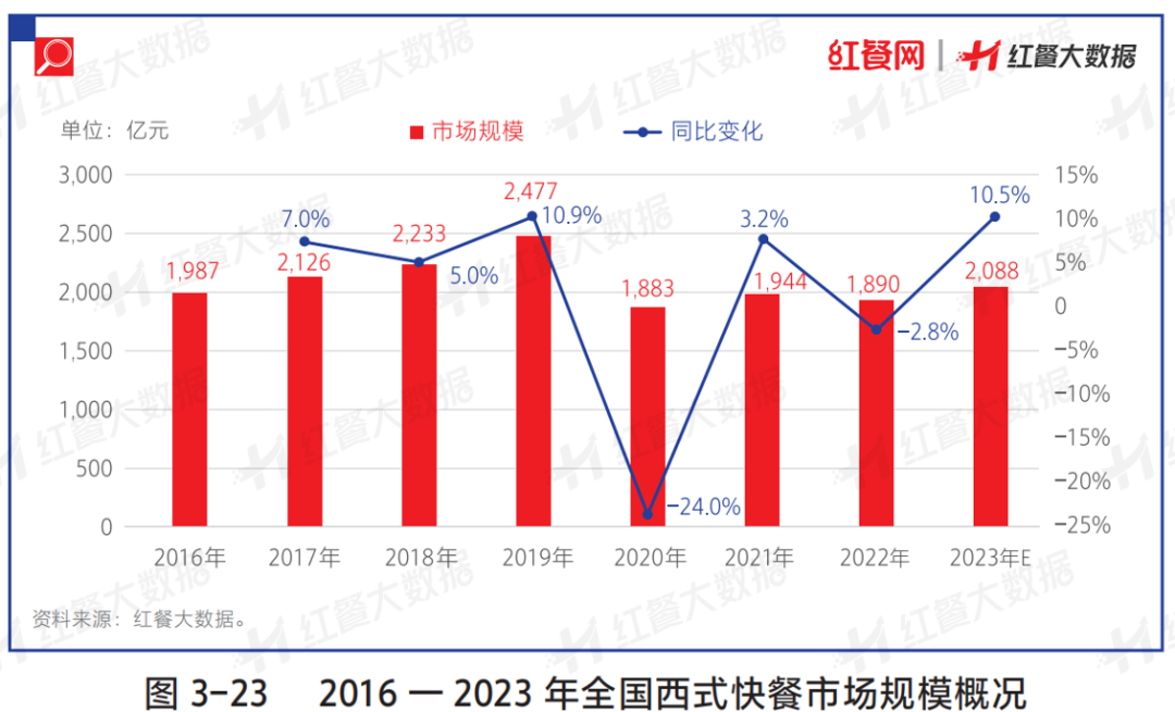 进入2023年以来,西式快餐赛道迎来了快速发展期。红餐大数据显示,2023年我国西式快餐市场规模有望突破2,000亿元。