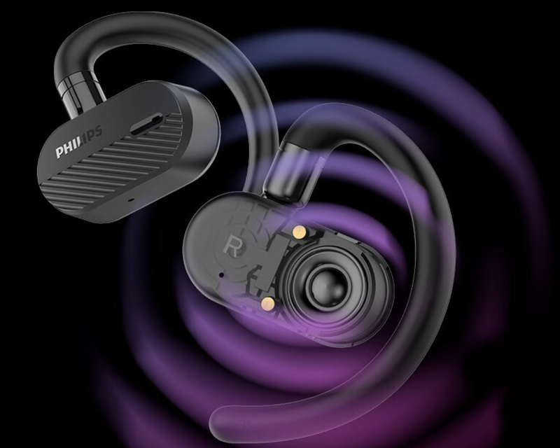 不过现在情况就不同了,如果你想要同时兼顾音质、运动稳定性并且能听到环境音的话,那这款飞利浦OWS耳机A6708就肯定适合你了。它采用了更加灵活的挂耳式设计,单个耳机只有10.3g,耳挂部分能够上下左右调节,所以各种耳型都能够很牢固的佩戴,甚至就算你戴眼镜也不会有丝毫的影响,戴上它一样舒适又牢靠。