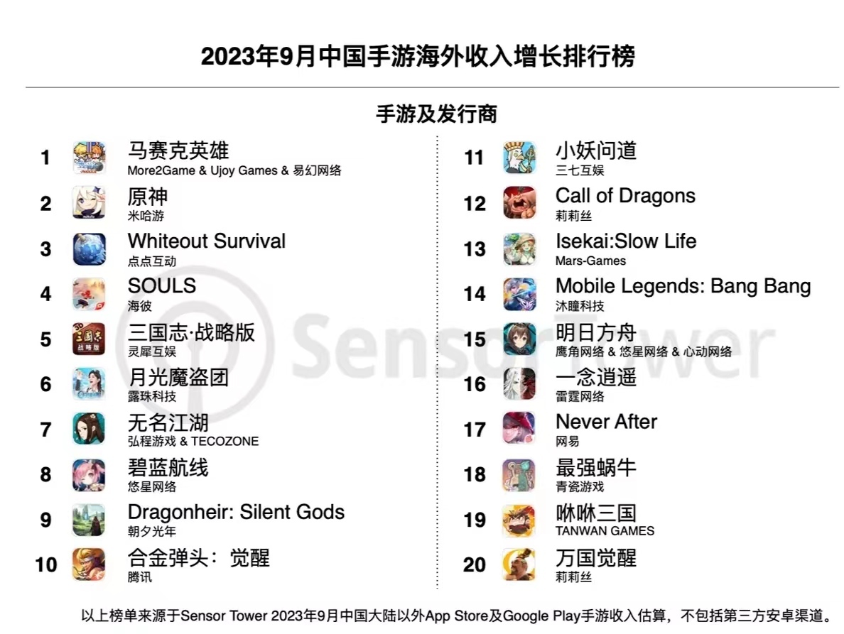 日前,第三方机构SensorTower发布了2023年9月出海手游收入榜单,一款名为《马赛克英雄》的手游空降收入榜第11位,并成为当月的海外收入增长冠军。