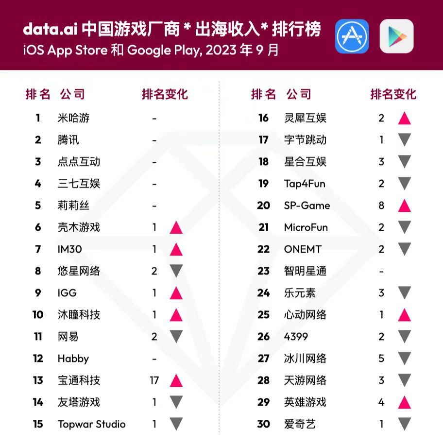 据dataai CN发布的2023年9月中国游戏厂商及应用出海收入30强榜单,凭借《马赛克英雄》9月份在日本地区的优异表现,宝通科技当月排名上升17位至榜单第13位。