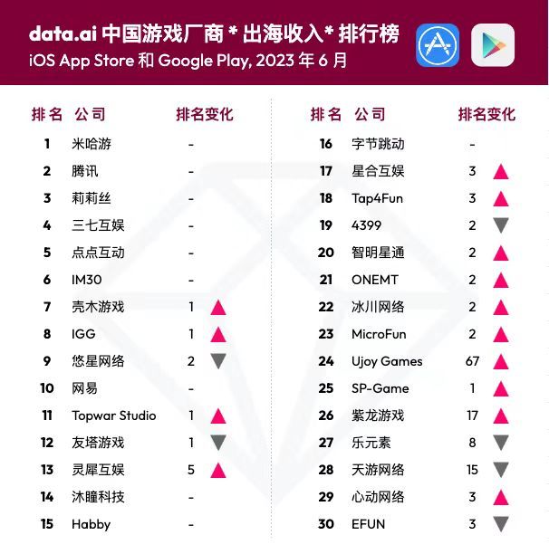 据dataai CN发布的2023年6月中国游戏厂商及应用出海收入30强榜单,凭借《马赛克英雄》(Pixel Heroes)6月份在韩国地区的不俗成绩,Ujoy Games当月排名上升67位至榜单第24位。