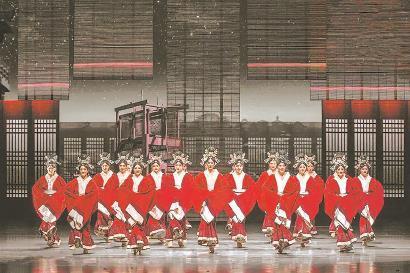 舞剧《五星出东方》“锦绣”舞段在舞台上营造的庄重威仪之感还离不开一个重要的道具:屏风