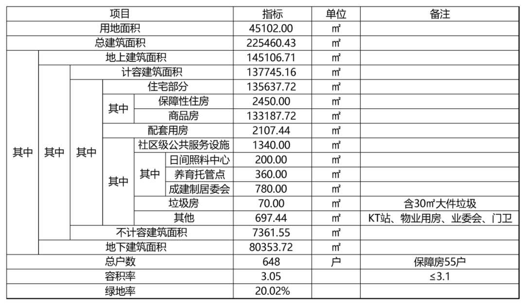 具体经济技术指标如下: