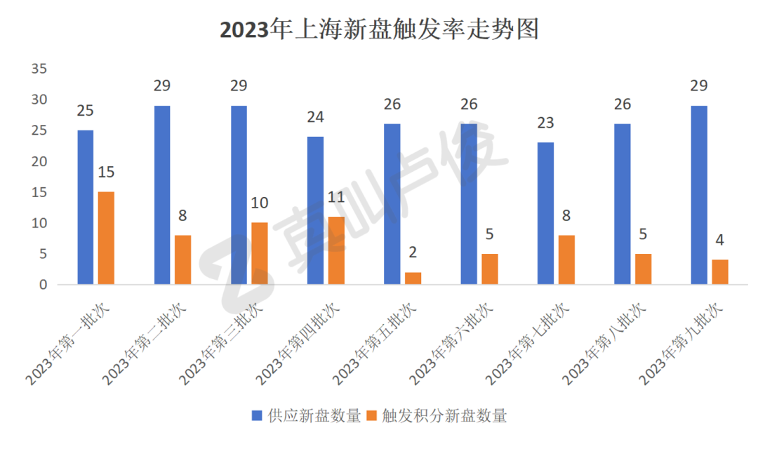 首先是积分悄然退出市场,可以看到上海第九批次新盘29盘中,最终只有4盘触发积分