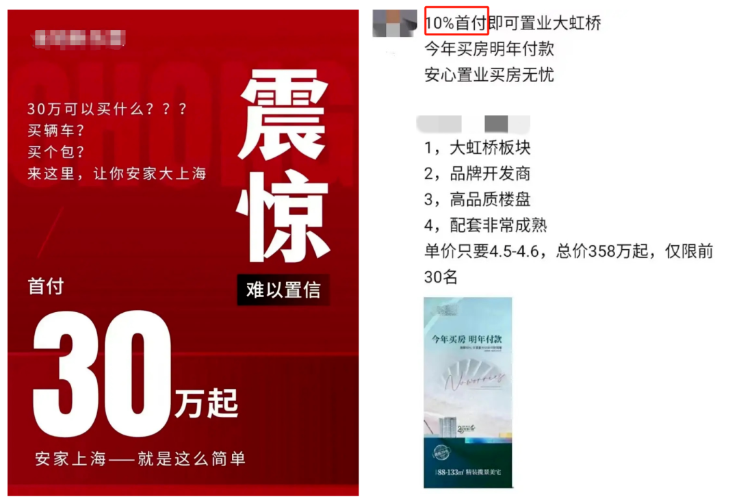 最近在市场上看到首付一成、30万上车上海等等海报还是挺触目惊心的