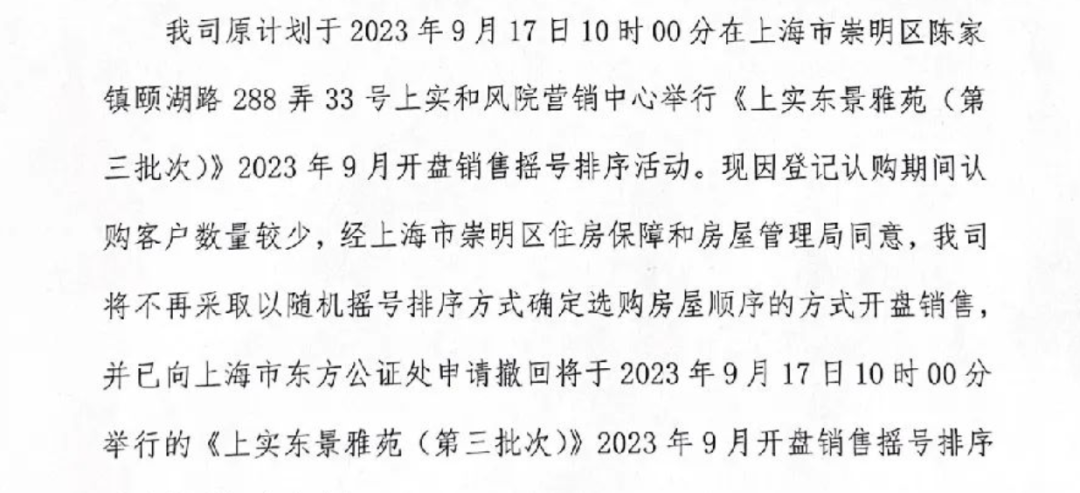 网上曝光上实和风院在今年认购人数,一共6组意向认购,因此取消了开盘摇号
