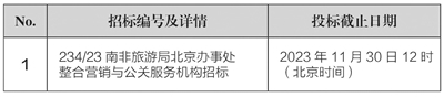 我们诚邀优秀的整合营销和公关服务机构参与竞标,并基于对南非旅游局品牌精神的理解,向南非旅游局递交提案。中标者将基于非排他性原则,协助南非旅游局北京办事处就公共关系、消费者体验营销、数字营销和旅业营销等业务,在中国市场进行旅游推广。服务期限为三年。