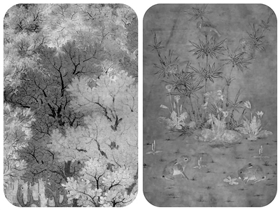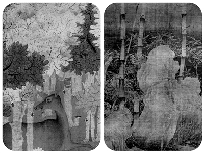 《丹枫呦鹿图》(局部)与《雪竹图》(局部)对比