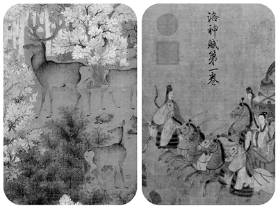 《丹枫呦鹿图》(局部)与《洛神赋图》(局部)对比