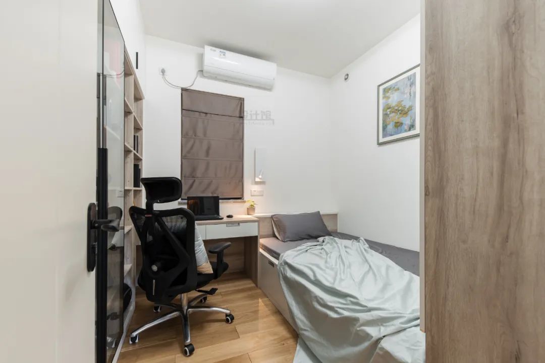 在小卧室的窗户尺寸比较小的情况,装布帘的话——窗帘小会显得尴尬,窗帘太大又怕影响空间利用!那么就不妨考虑安装卷帘,这种窗帘对小窗户而言会更加实用简洁。