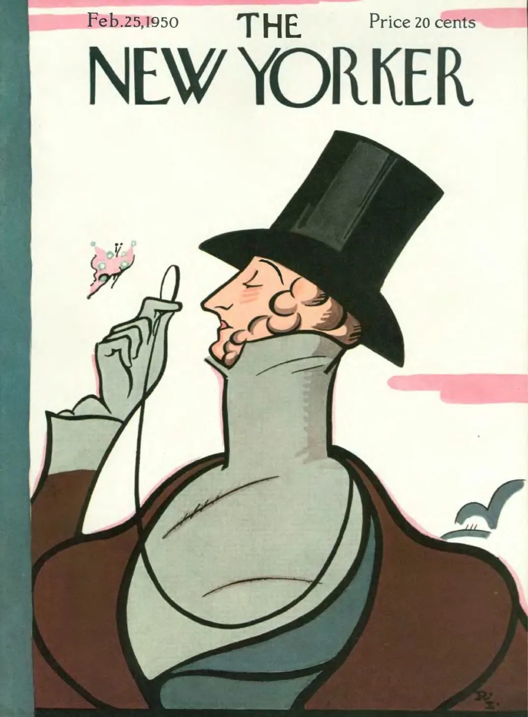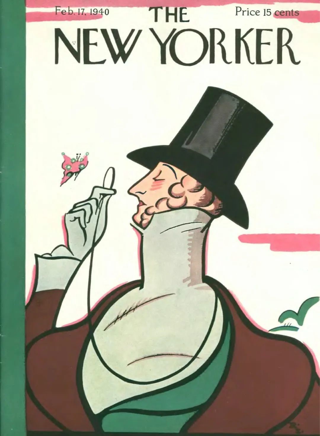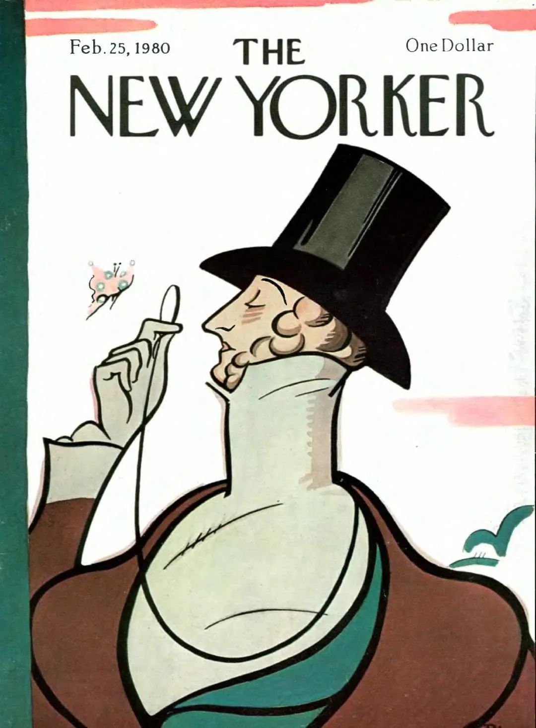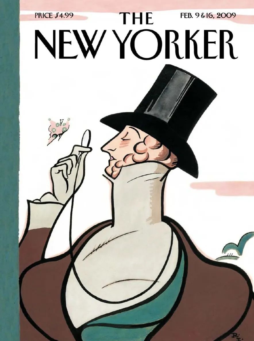 事实上,《纽约客》每年二月底都必然有一期封面,主角是一位身着早期维多利亚服饰,头戴海狸皮帽,手持单片眼镜,全神贯注地观察着一只蝴蝶的绅士。