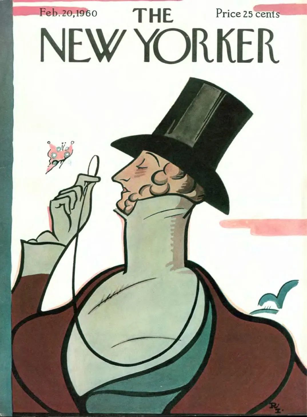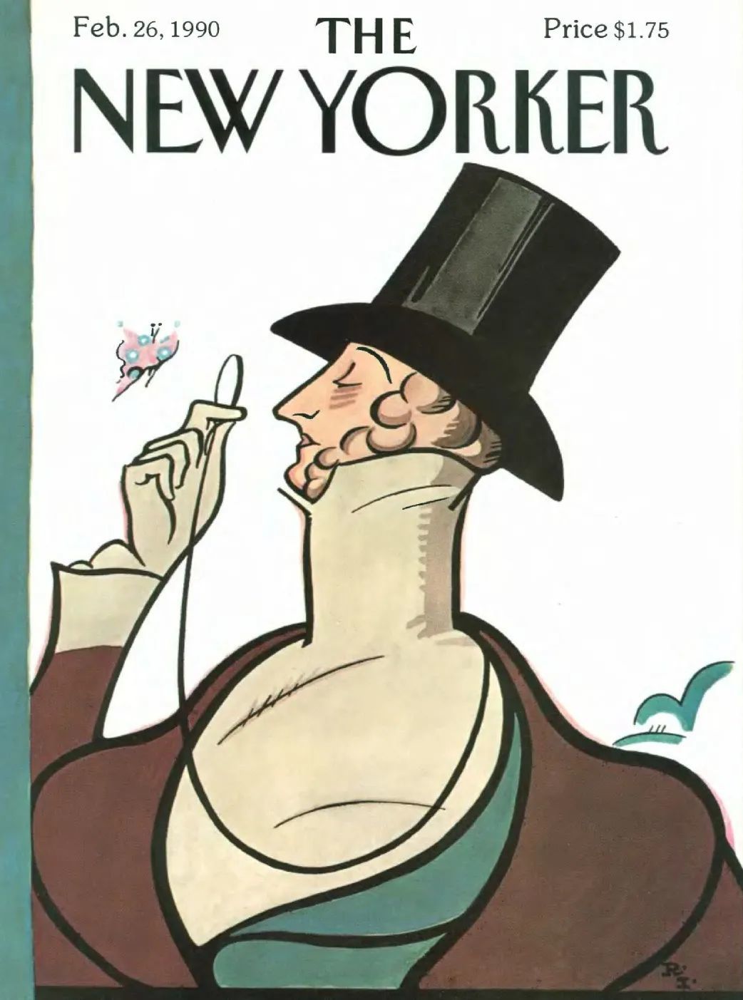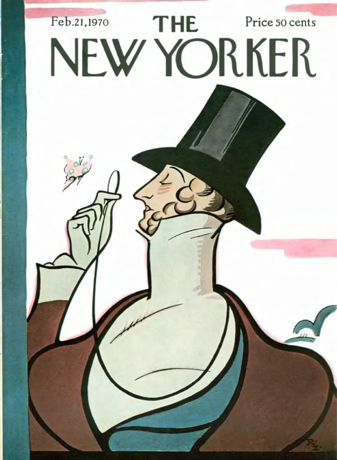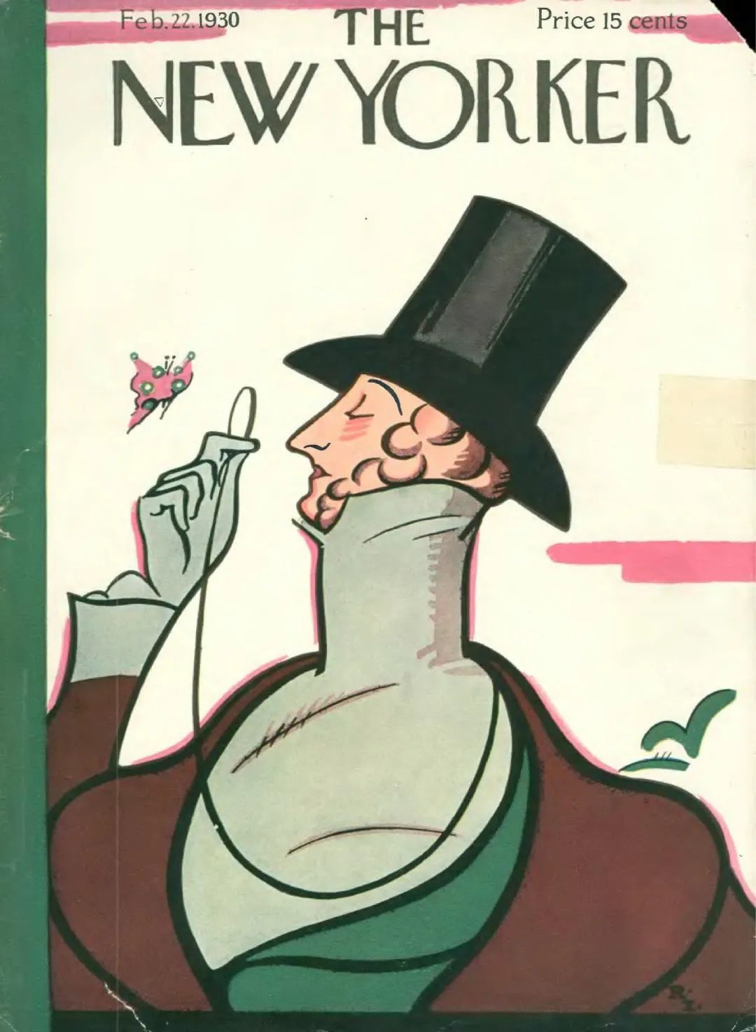 事实上,《纽约客》每年二月底都必然有一期封面,主角是一位身着早期维多利亚服饰,头戴海狸皮帽,手持单片眼镜,全神贯注地观察着一只蝴蝶的绅士。