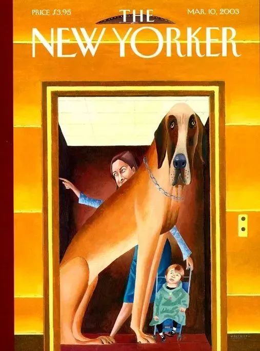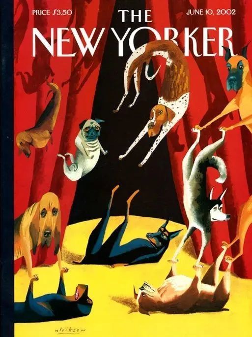 就是有时哪怕他明知与创作主题不符,也依然要在那些世界顶级刊物封面插画上,公然“叛逆”,任性地在画上加入一只甚至无数只小狗。