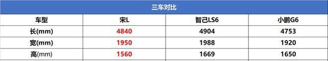 在22万元至28万元价格区间内,智己LS6和小鹏G6会首当其冲成为比亚迪宋L的直接竞品,接下来我们就来对比一下三款车型的尺寸参数。