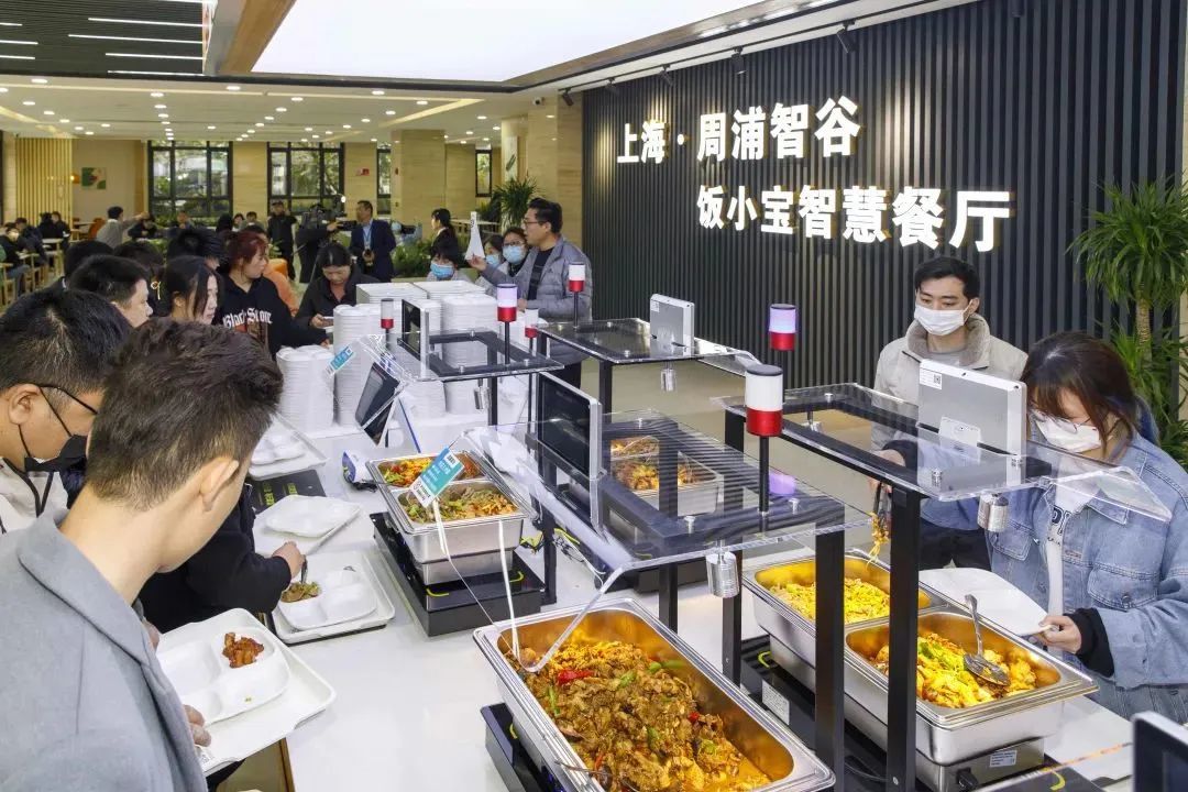 事实上,这已经是周浦开出的第二家社区智慧餐厅。今年3月,坐落于沈梅路123弄3号1楼的上海·周浦智谷饭小宝智慧餐厅开业,餐厅面积约500㎡、共设约180个就餐座位。除了社区居民,这家餐厅的粉丝还包括周边园区的上班族。