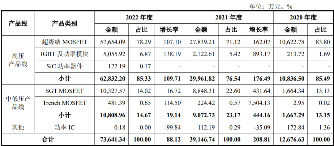 根据尚阳通招股书披露,超级结MOSFET产品是公司的主要产品,为公司贡献了超过70%的营收。