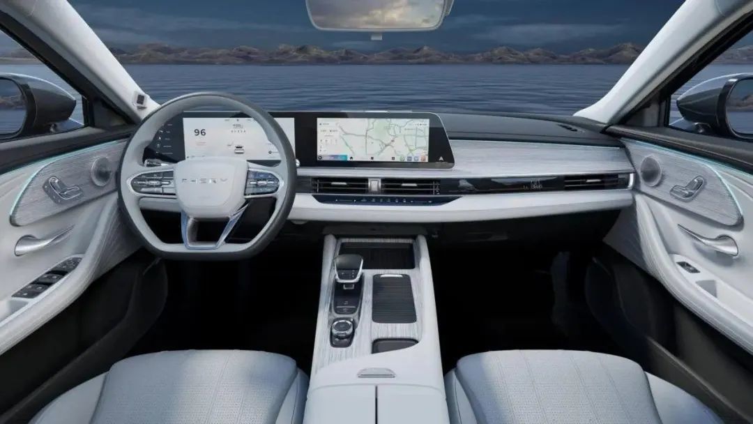 内饰方面,新车型同样延续了艾瑞泽8燃油车系的设计布局,将配备有双12.3英寸仪表盘、贯穿式空调出风口、三幅式方向盘、木纹色饰板和电子挡把和电子手刹等设计元素,在视觉感受上仍非常简洁美观。