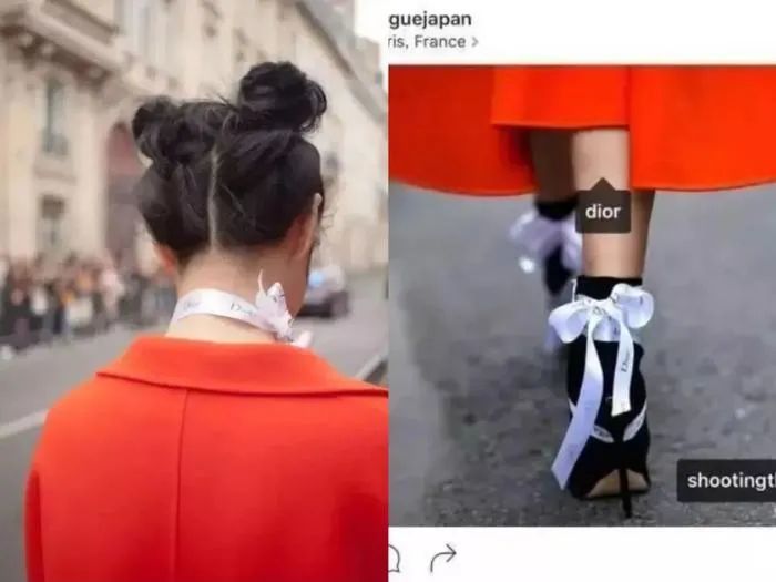 2017年春夏巴黎时装周,她曾把Dior用于系在鞋子上的缎带,独出心裁的变成一条系在脖子上的choker。