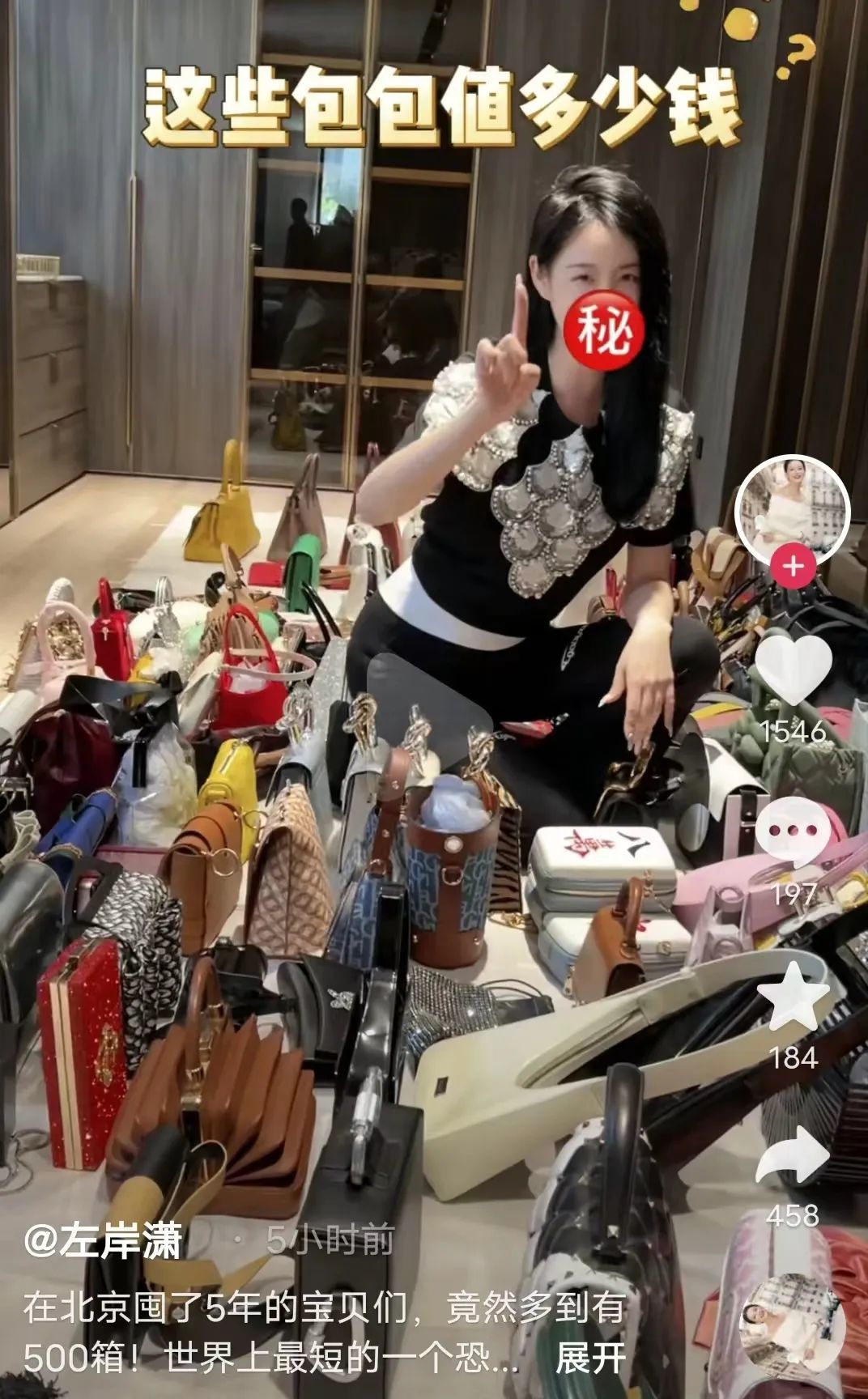 早在2009年,左岸潇就凭借一张“爱马仕浮云图”走红。当时,她在楼梯上摆满了颜色各异的爱马仕,配上当时最红的网络语:神马都是浮云。