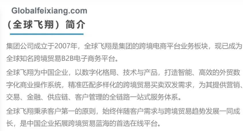 “全球飞翔”跨境电商B2B贸易平台,作为国内领先,全球知名的跨境电商企业品牌,近年来交易规模和技术水平都急剧提升,为山东跨境电商产业的发展提供了新的助力。